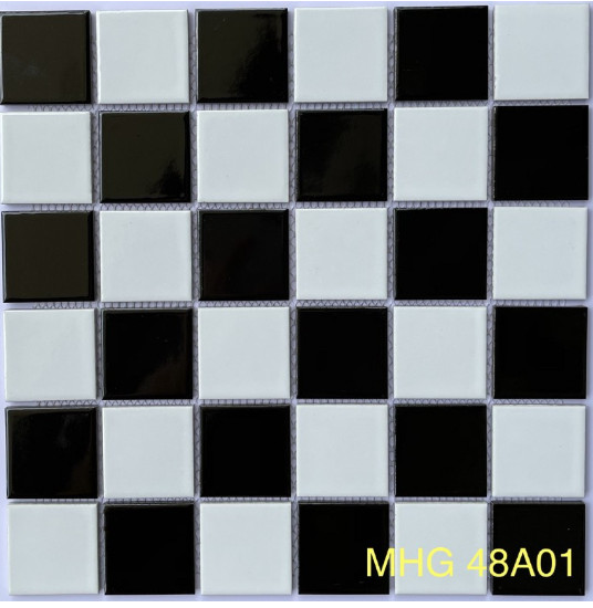 Gạch Mosaic Gốm Sứ Mix Trắng Đen MHG 48A01